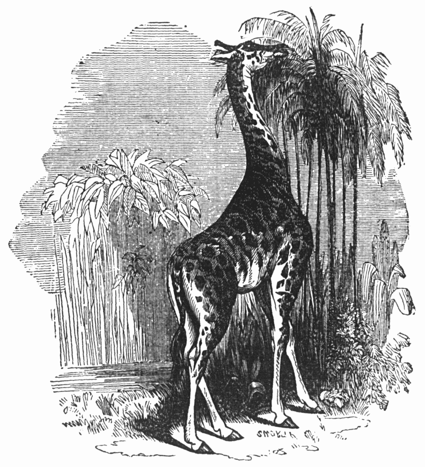 Some years ago, a giraffe was sent from Egypt to Constantinople. His keeper used to exercise him in an open square, where the Turks flocked daily, in great crowds, to see the extraordinary animal. Seeing how inoffensive he was, and how domestic he became, the keeper took the animal with him through the city; and wherever he appeared, a number of friendly hands were held out of the latticed windows, to offer him something to eat. When he came to a house where he had been well treated, if no one was at the window, he would tap gently against the wooden lattice, as if to announce his visit. He was extremely docile and affectionate; and if left to himself, he always frequented the streets where he had the most and best friends.