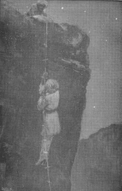 "He cut a bit of rope from the raffle hanging from the spar, and tied one end round my waist and the other round his own, leaving about five fathoms loose between us.