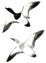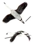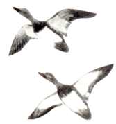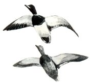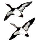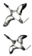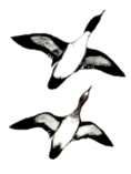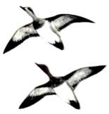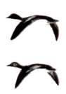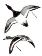 Thick-necked stocky birds, alternately flapping and sailing in flight; flocks string out in a line, close to the water. Occurs in the United States chiefly along New England coasts and occasionally south to New Jersey.
