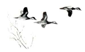 Within shotgun range, color areas can be important. Light conditions might make them look different, but their size and location are positive keys. The sound of their wings can help as much as their calls. Flying goldeneyes make a whistling sound; wood ducks move with a swish; canvasbacks make a steady rushing sound. Not all ducks quack; many whistle, squeal, or grunt.