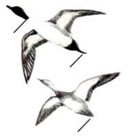 These are nervous birds, quick to take alarm. Their flight is fast, irregular, with many twists and turns. In a bunched flock, their movements have been compared to those of pigeons.