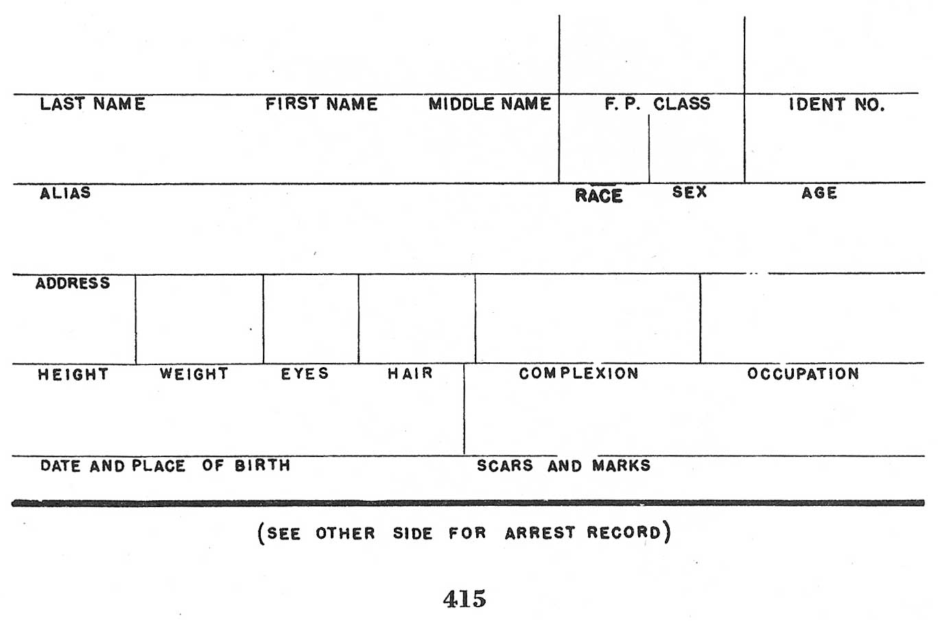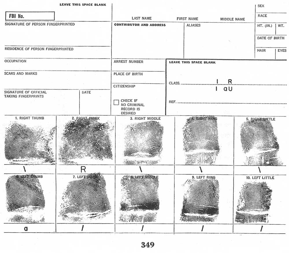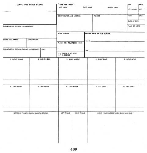 During the years many persons have voluntarily submitted their fingerprints to the Identification Division for possible use in the case of an emergency. These cards are not filed with the criminal fingerprints but are maintained separately. Such prints should be taken on the standard[Pg 4] fingerprint form entitled "Personal Identification" (Form FD-353). No answer is given to Personal Identification fingerprint cards.
