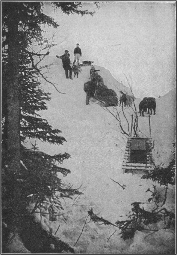 There was not a moment to lose. I tore off my oilskins, threw myself on my hands and knees by the side of the komatik to give a larger base to hold, and shouted to my team to go ahead for the shore. Before we had gone twenty yards, the dogs got frightened, hesitated for a moment, and the komatik instantly sank into the slob. It was necessary then for the dogs to pull much harder, so that they now began to sink in also.