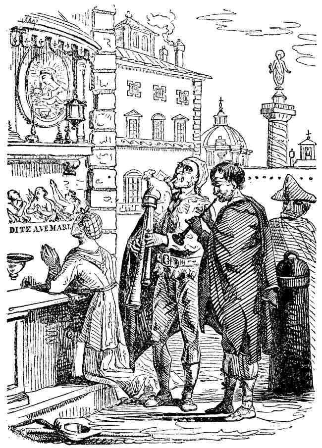 [76] “Three eggs and some butter we bring, too; deign to accept it! A fowl to make some broth if Thy mother can cook it—put some dripping in, and ‘twill be good. Because we've nothing else—we are but poor shepherds—accept our goodwill.”