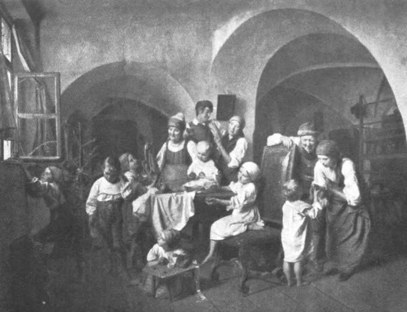 [22] “The Child is laid in the crib, so hearty and so rare! My little Hans would be nothing by His side, were he finer than he is. Coal-black as cherries are His eyes, the rest of Him is white as chalk. His pretty hands are right tender and delicate, I touched Him carefully. Then He gave me a smile and a deep sigh too. If you were mine, thought I, you'd grow a merry boy. At home in the kitchen I'd comfortably house you; out here in the stable the cold wind comes in at every corner.”
