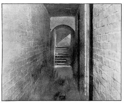 Note on Illustration of Cellarway Leading into Partially Underground Apartment. This passage-way is several steps down from the court or alley-way, and leads to the apartment seen in accompanying picture. There are many of these dark cellarways leading to underground tenements.Return to pictureReturn to text