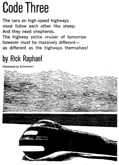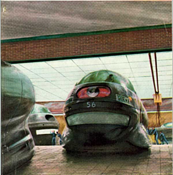 Beulah resembled a gigantic offspring of a military tank, sans heavy armament. But even a small stinger was part of the patrol car equipment. As for armament, Beulah had weapons to meet every conceivable skirmish in the deadly battle to keep Continental Thruways fast-moving and safe. Her own two-hundred-fifty-ton bulk could reach speeds of close to six hundred miles an hour utilizing one or both of her two independent propulsion systems.