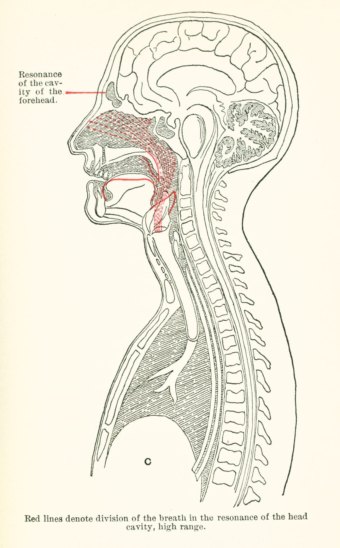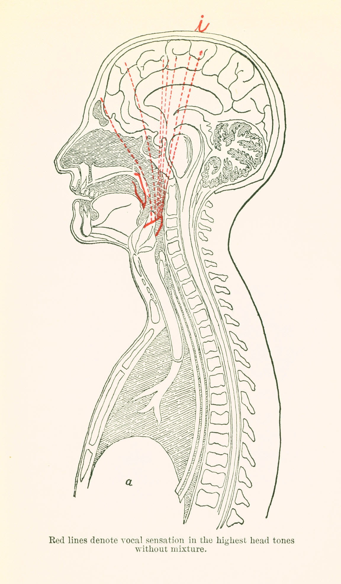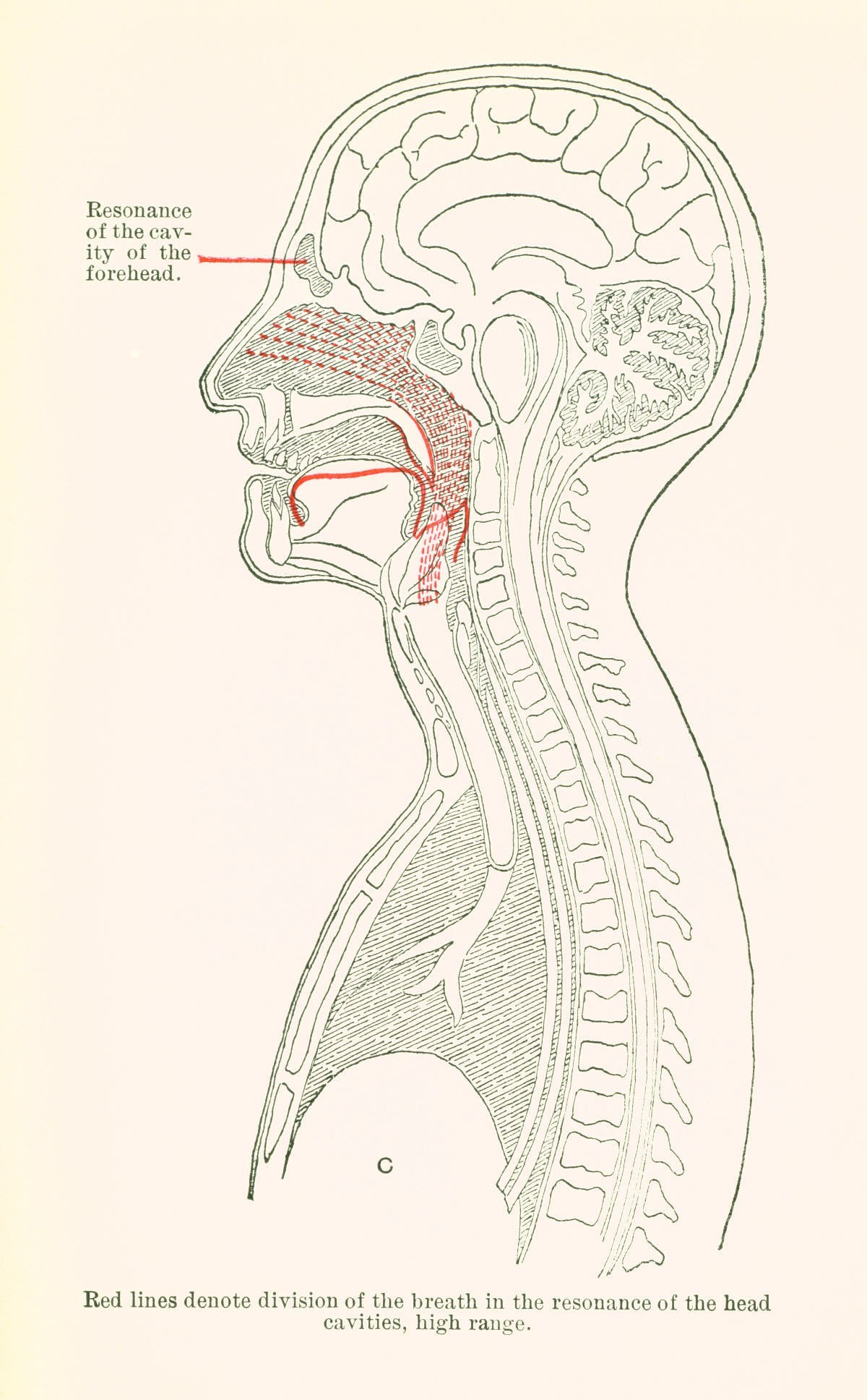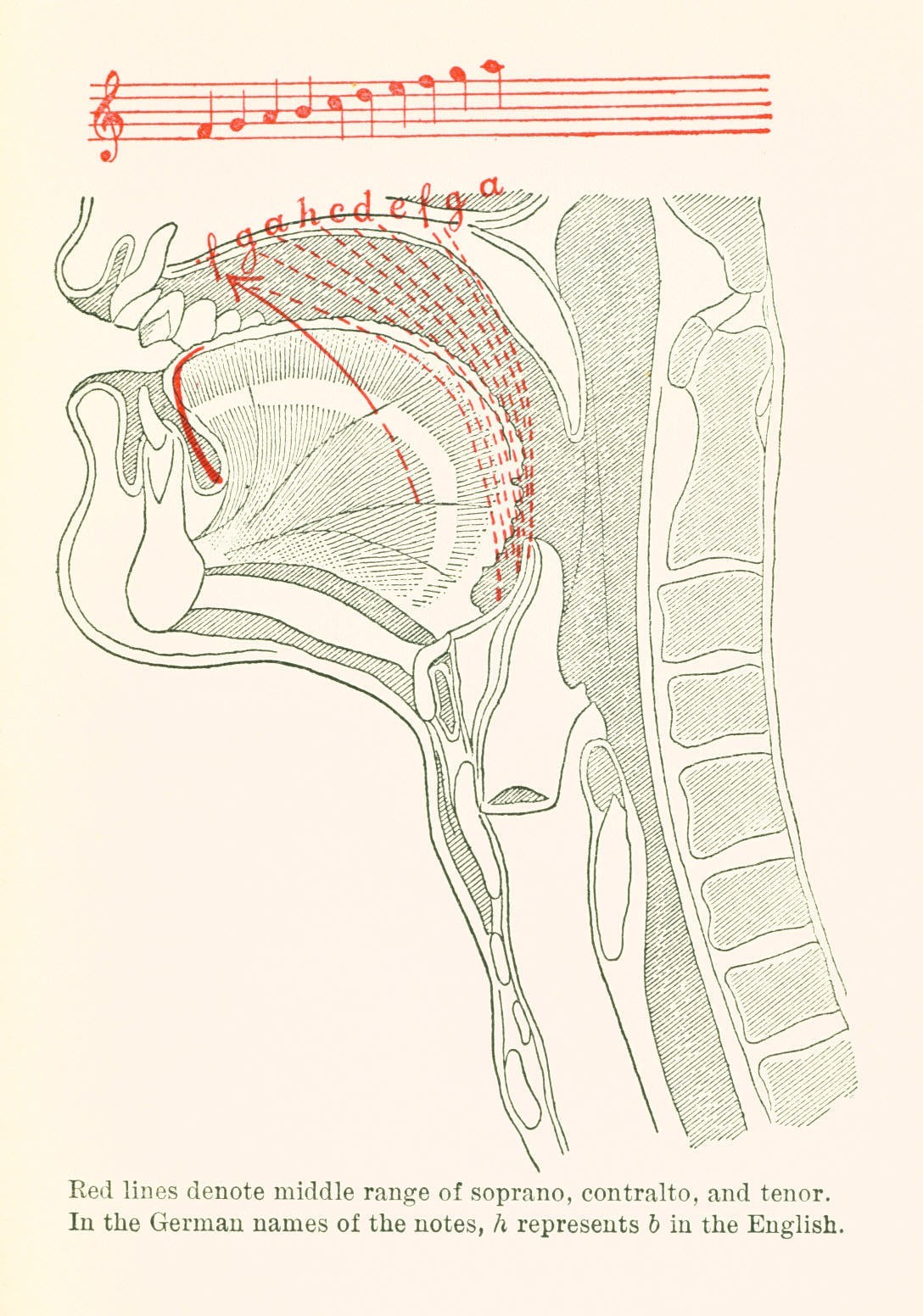To me it is always as if the pitch of the highest tone were already contained in the lowest, so strongly concentrated upon the whole figure are my thoughts at the attack of a single tone. By means of ah-e-ā, larynx, tongue, and palatal position on the lowest tone are in such a position that the vibrations of breath for the highest tones are already finding admission into the head cavities, and as far as possible are in sympathetic vibration there.