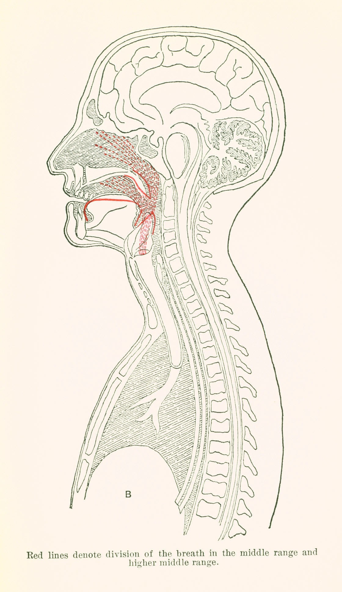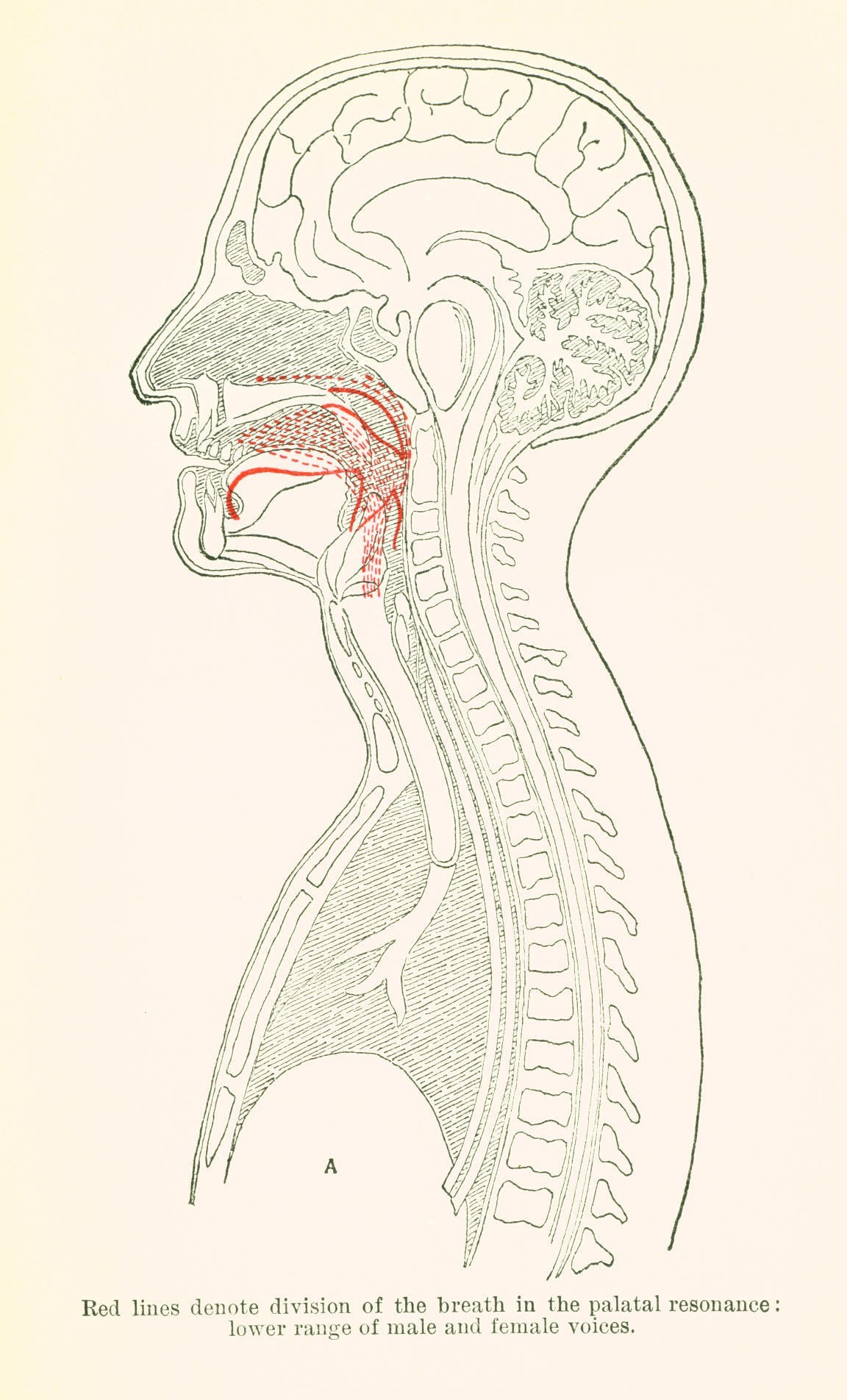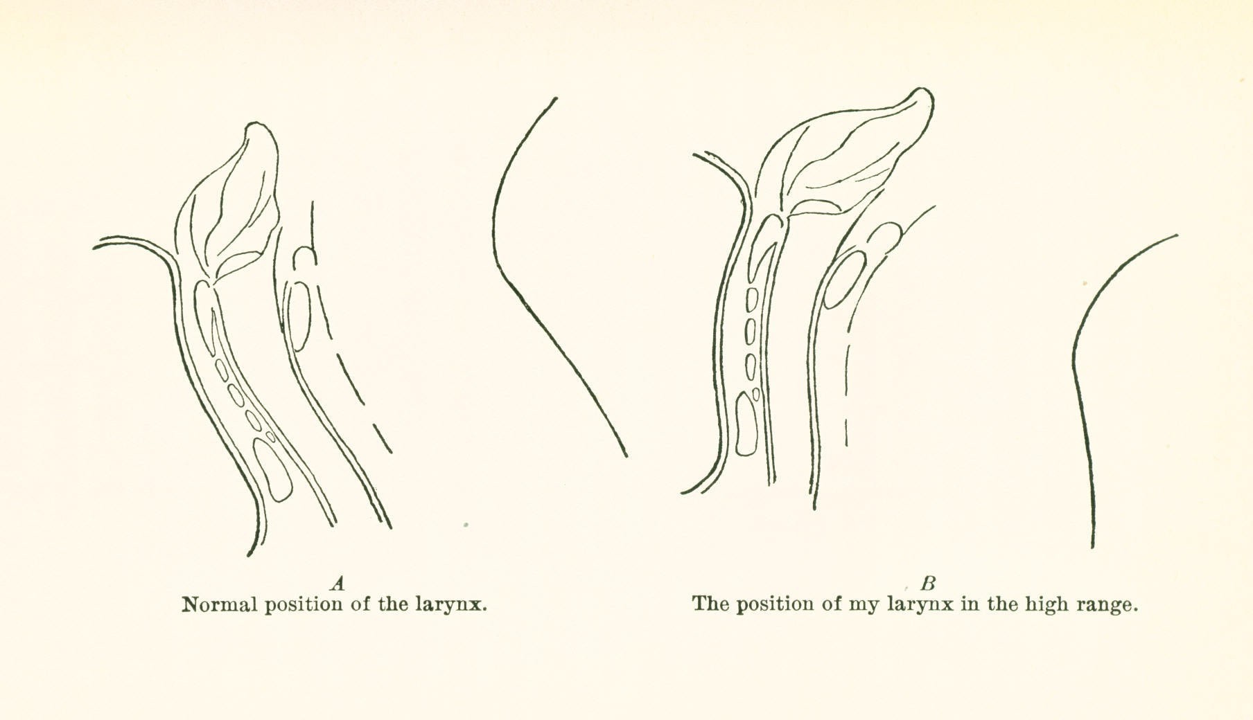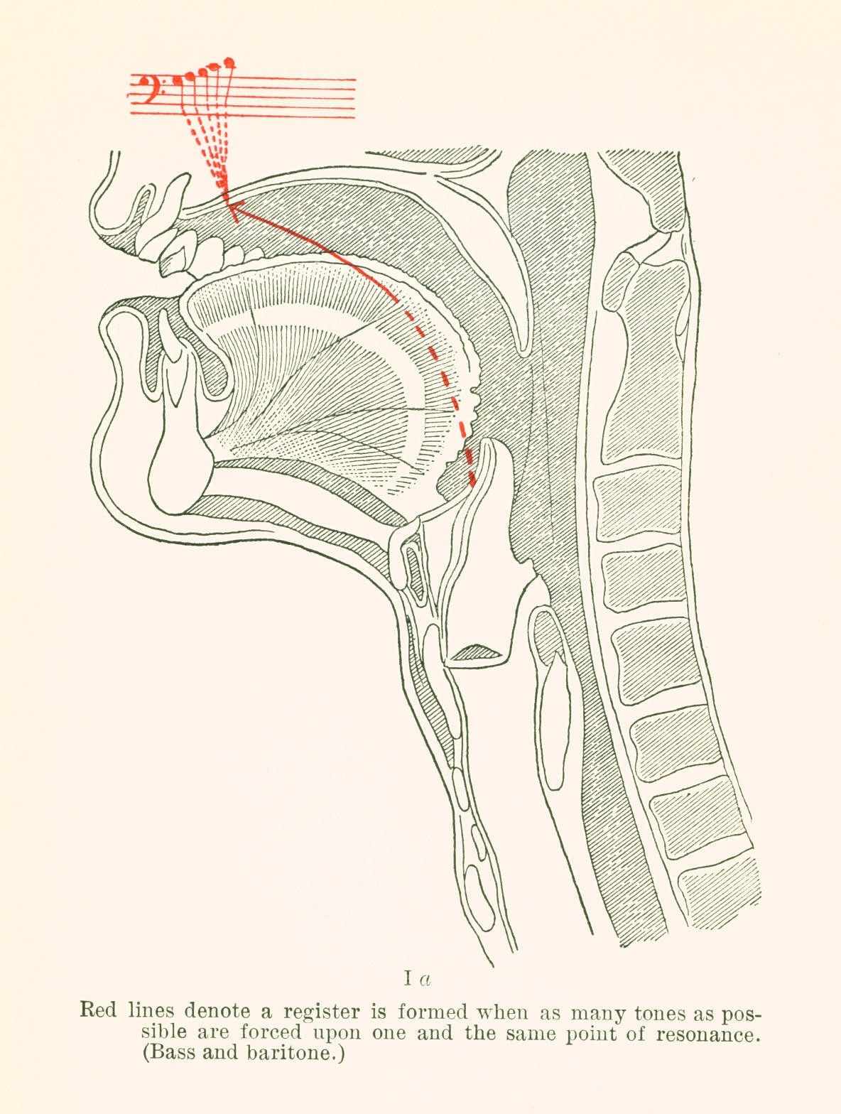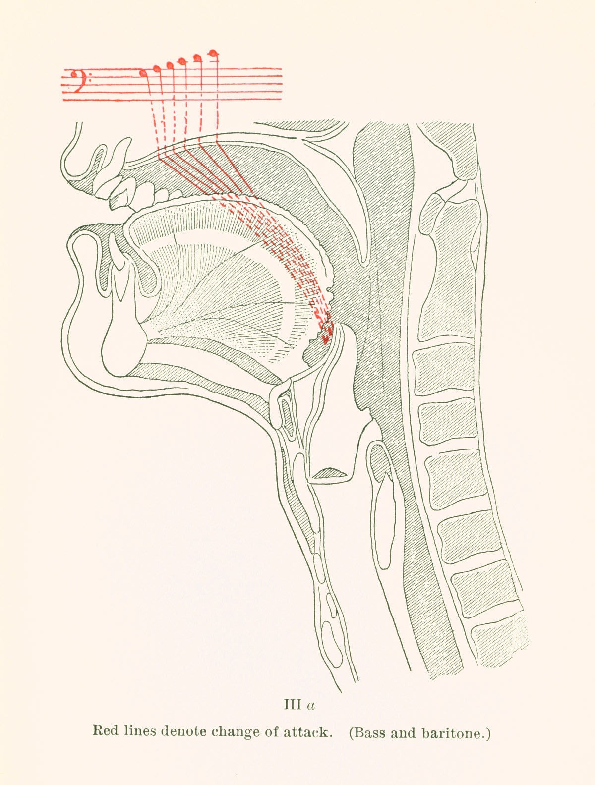 To me it is always as if the pitch of the highest tone were already contained in the lowest, so strongly concentrated upon the whole figure are my thoughts at the attack of a single tone. By means of ah-e-ā, larynx, tongue, and palatal position on the lowest tone are in such a position that the vibrations of breath for the highest tones are already finding admission into the head cavities, and as far as possible are in sympathetic vibration there.
