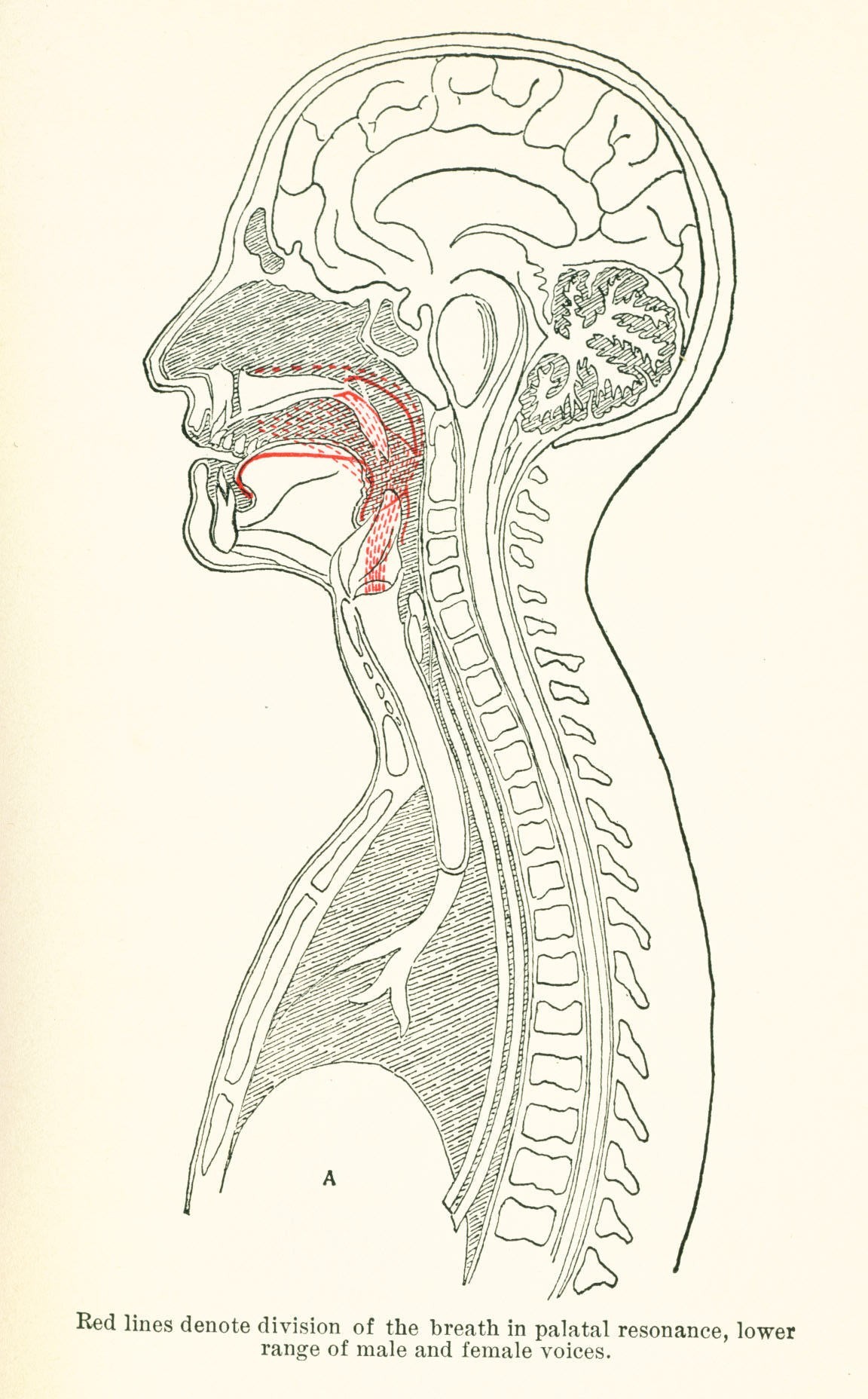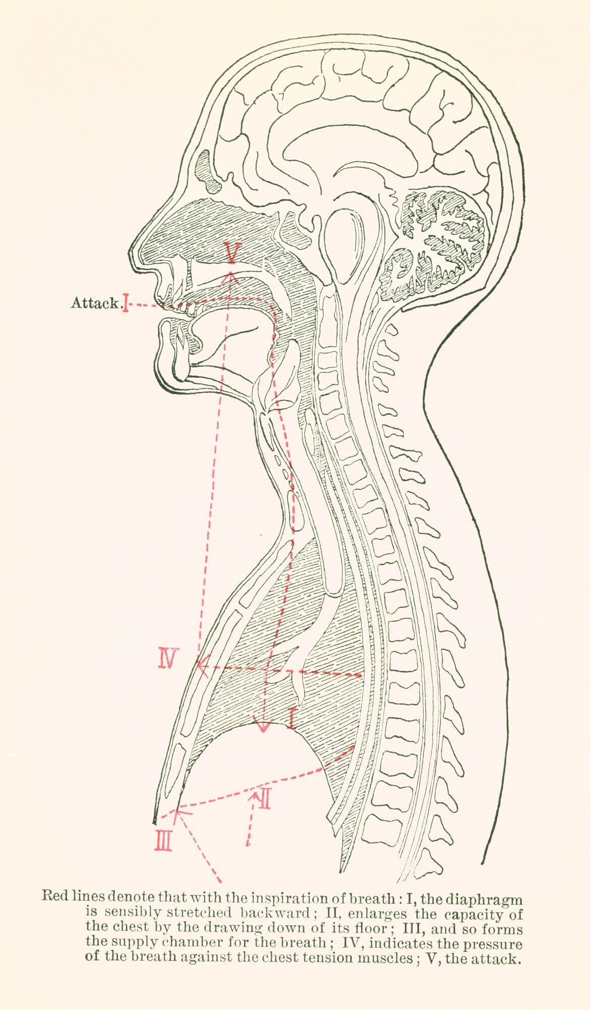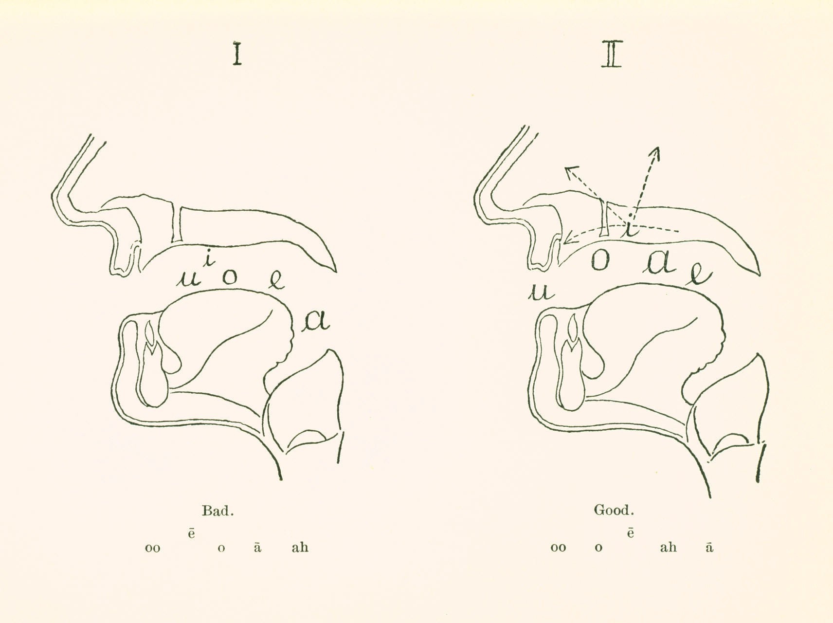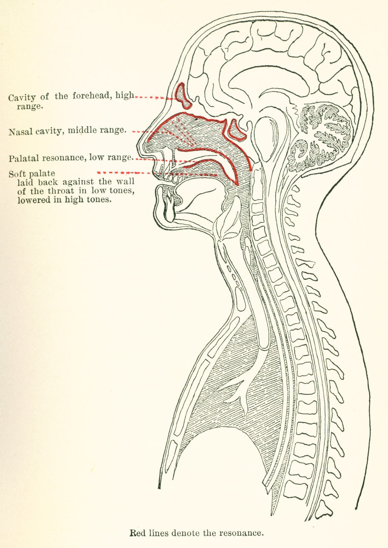 To me it is always as if the pitch of the highest tone were already contained in the lowest, so strongly concentrated upon the whole figure are my thoughts at the attack of a single tone. By means of ah-e-ā, larynx, tongue, and palatal position on the lowest tone are in such a position that the vibrations of breath for the highest tones are already finding admission into the head cavities, and as far as possible are in sympathetic vibration there.