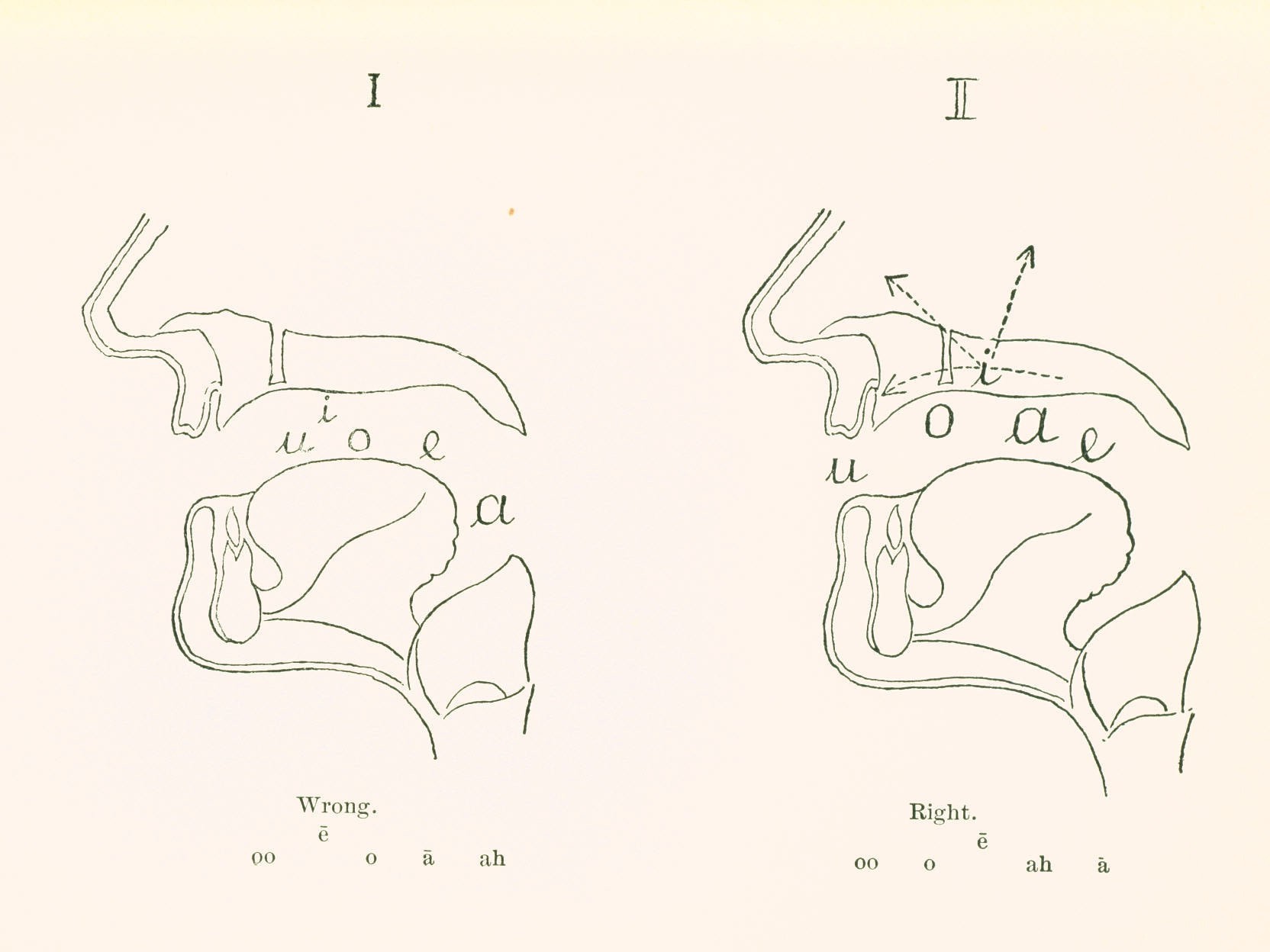 The turn, too, based on the consistent connection of the tonal figure with the nasal quality,—which is obtained by pronouncing the oo toward the nose,—and firmly held there, permits no interruption for an instant to the vowel sound.
