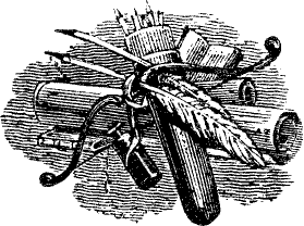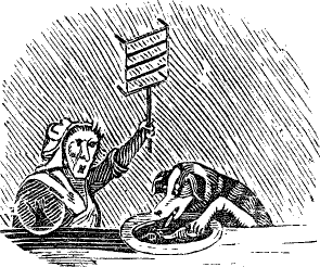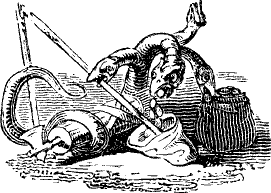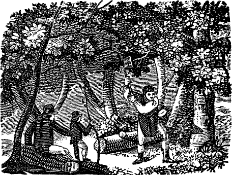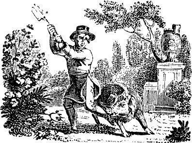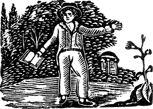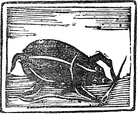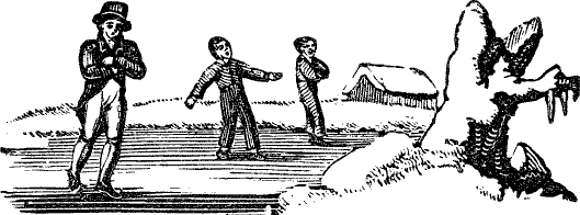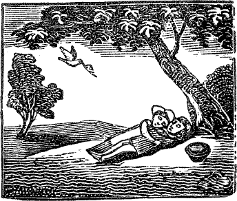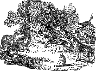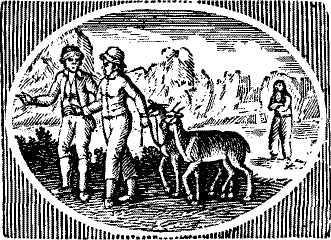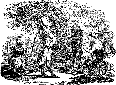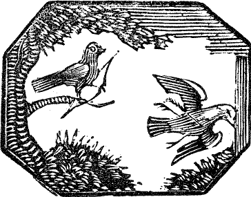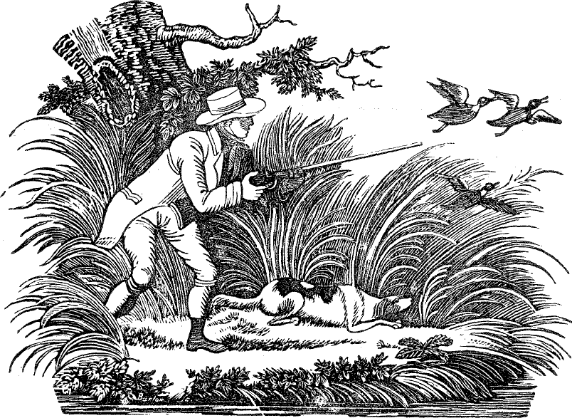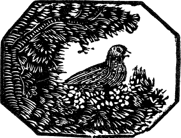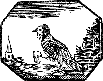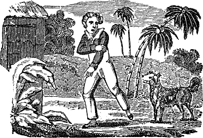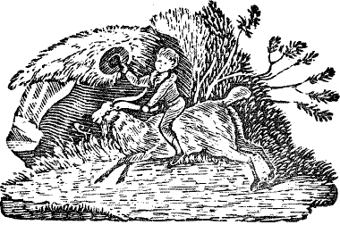 Tegg’s edition of 356 pages, 12mo, is to be seen in the Reading Room of the British Museum, and gives the full text and history of these. This curious book would well bear representing with the original Bewick cuts, after the manner of the present Newbery firm, who have revived Butterfly’s Ball, Grasshopper’s Feast, Goody Two Shoes, Looking Glass for the Mind, and contemplate others in the immediate future. Tegg in his reprint v of the Book on Philip Quarll, states that he was born in St. Giles’ Parish, London, 1647, voyaged to Brazil, Mexico, and other parts of America, was left on an island, nourished by a goat, and other surprising adventures. Edward Dorrington communicates an account (see p. 1 to 94 inclusive) of how the hermit Philip Quarll was discovered, with his (E. D.’s) return to Bristol from Mexico, Jan. 3, 1724-5; but is about returning to Peru and Mexico again (p. 94). This is of both American and Bewick interest. Besides these representatives of this Chap Book, we are enabled to give in this collection impressions from the blocks of other editions fortunately rescued from oblivion and destruction.