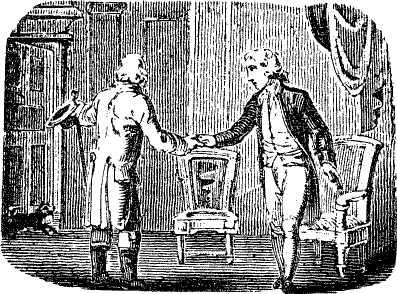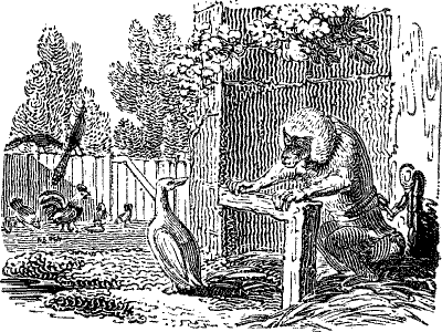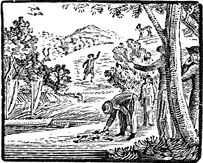 see “The Traveller.” He was surrounded by children in this unsavoury neighbourhood, where he had his humble domicile: a woodcut in Lumburd’s Mirror depicts it very correctly. Bishop Percy, author of the “Reliques,” called on him, and during the interview the oft repeated incident occurred of a little child of an adjacent neighbour, “Would Mr. Goldsmith oblige her mother with a chamber pot full of coals!” Truly these were hours of ill-at-ease. The largest collection of the various relics of woodcuts used in the chap book literature, “printed for the Company of Flying Stationers, also Walking Stationers,”—for such is a portion of the imprint to be found on several of the early Chap Books printed at Banbury—is to be seen in the Library of the British Museum; but the richest collection of these celebrated little rarities of iii Toy Books is in the venerable Bodleian Library. Among the very interesting block relics of the past are the pretty cuts to Mrs. Trimmer’s “Fabulous Histories, or The Robins:” these were designed by Thomas Bewick, and engraved by John Thompson, his pupil, who enriched Whittingham’s celebrated Chiswick Press with his fine and tasteful work. A numerous series of little fable cuts by the same artist are to be found in this volume. One of the quaintest sets engraved at an early period by John Bewick (the Hogarth of Newcastle), are to “The Hermit, or Adventures of Edward Dorrington,” or “Philip Quarll,” as it was most popularly known by that title a century ago. The earliest edition I have seen of Philip Quarll is as follows: “The Hermit, or the unparalleled sufferings and surprising adventures of Mr. Philip Quarll, an Englishman who was lately discovered by Mr. Dorrington, a Bristol merchant, upon an uninhabited island in the South Sea, where he lived above fifty years without any human assistance, still continues to reside, and will not come away,” etc. Westminster: Printed by J. Cluer and A. Campbell, for T. Warner in Paternoster Row, and B. Creape at The Bible in Jermyn Street, St. James’s, 1727. 8vo, xii pp., map and explanation, 2 pp., and 1 to 26 appendix, with full page copper plate engravings. He was born in St. Giles’, left his master a locksmith, went to sea, married a famous w——e, listed for a soldier, married three wives, condemned at the Old Bailey, pardoned by King Charles II., turned merchant, and was shipwrecked on a desolate island on the coast of Mexico, etc. Other editions in the British Museum are 1750; 1759 (third); 1780 (twelfth); 1786 (first American edition, from the 6th English edition, Boston, U.S.A.); 1787 (in French); 1795 (seventeenth); 1807; and also in a “Storehouse of Stories,” edited by Miss C. M. Yonge, 2 vols, 8vo (Macmillan, 1870-2), Philip Quarll (also Perambulations of a Mouse, Little Jack, Goody Two Shoes, Blossoms of Morality, Puzzle for a curious Girl), and others are given. The text is useful to refer to, as the originals are rare: the woodcuts of several of them are in this volume. “Philip Quarll,” Miss Yonge says, “comes to us with the reputation of being by Daniel Defoe; but we have never found anything to warrant the supposition. It must have been written during the period preceding the first French Revolution.” There is also in the Museum an edition printed in Dutch in 1805.