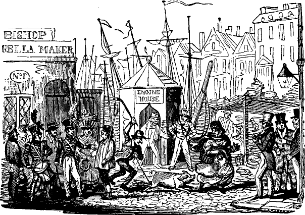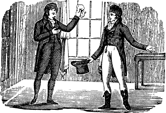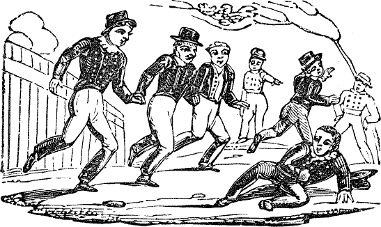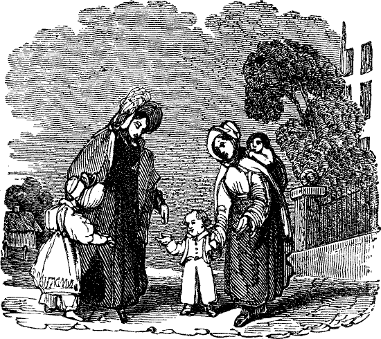 About 1820, many curious Tracts were issued by various Societies with the illustrations which follow. Some of these Tracts relating to Social and Religious questions of that day had been edited by Hannah More and her sister—at “Barley Wood,” near Bath—also by Rowland Hill, the eccentric divine of old Surrey Chapel, and others; these are now quite ephemeral literary productions, notably some on the “Sunday Question.” Several of the following cuts were used contemporary with Timothy Spagg’s (Charles Dickens’s) Sunday Under Three Heads. One of these, an 8vo pamphlet, has on the title, a large woodcut by Thomas Bewick, commencing;—Here we have Bewick, I declare, etc. Many of the original cuts to the Bristol series of Tracts issued from 1805 to 1820 are in this volume.