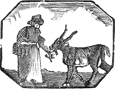 5 The packmen of the past [see frontispiece of a pack-horse in First Edition only of Bewick’s Quadrupeds, 1790] carried in their packs the ephemeral literature of the day, Calendars, Almanacks, and Chep-Books. The Leicestershire pronunciation to this day at markets is “Buy Chep” for Cheap, hence the Chep-side, or Cheape-or Cheapside; otherwise derivation of Chap Men, or Running, Flying, and other mercurial stationers, peripatetic booksellers, pedlers, packmen, and again chepmen, these visited the villages and small towns from the large printers of the supply towns, as London, Banbury, Newcastle, Edinburgh, Glasgow, etc. The “History of John Cheap, the Chapman,” “Parley the Porter,” “Stephen of Salisbury Plain,” and other favourite tracts, with John Bewick’s and Lee’s square woodcuts were written by the quaker lady, Hannah More, about 1777, and were first published in broadsheet folio. Some were done by Hazzard, of Bath, others by Marshall, of Bow Lane, Aldermary Church Yard. A most curious collection of chap books did they print, reviving the quaint old “Blind Beggar of Bethnal Green,” “Guy, Earl of Warwick,” “Seven Champions,” “Mother Shipton’s Life and Prophecies,” “Wise Men of Gothan,” “Adam Bell,” “Robin Hood’s Garland,” “Jane Shore,” “Joaks upon Joaks,” “Strapho, or Roger the Clown,” “Whetstone for dull Wits,” “St. George and the Dragon,” “Jack Horner:” and hundreds of ballads, garlands, carols, broadsheets, songs, etc., were in the collection.