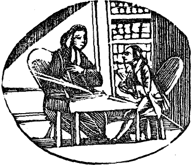 The following are two of the identical cuts engraved by John Bewick, and used in the Newbury editions of Goody Two Shoes, London, 1769 to 1771.