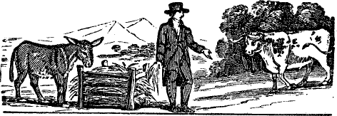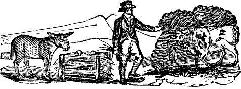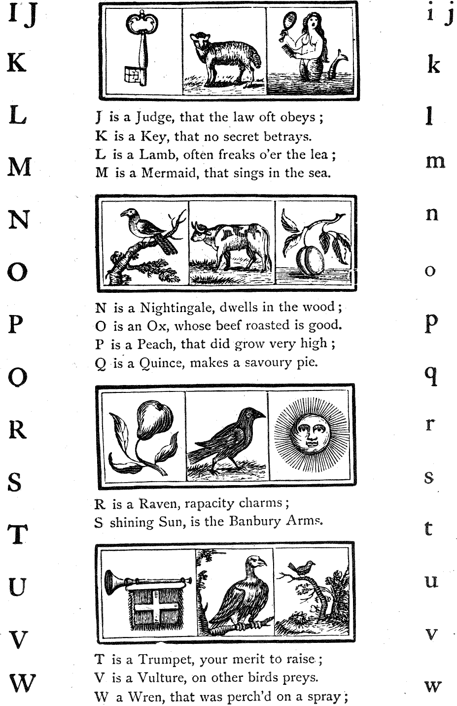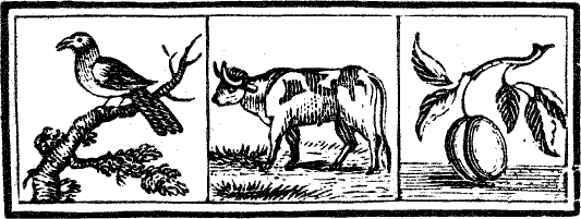 It will be seen on contrasting these cuts with the other two, on the following page, from early York editions, how wonderfully even in his early years Bewick improved the 3 illustrated juvenile literature of his day. No wonder when Goldsmith the poet had an interview with Bewick, that delighted with his cuts, he confessed to writing Goody Two Shoes, Tommy Trip, etc. Bewick’s daughter supplied this information.