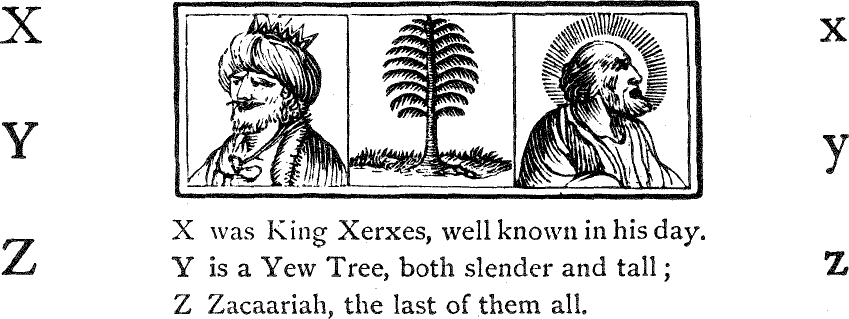 Some years ago a collection was formed of Newbury and Marshall’s Children’s Gift Toy Books, and early educational works, which were placed in the South Kensington Museum, in several glass cases. These attracted other collections of rare little volumes, adorned with similar cuts, many of which are from the identical blocks here impressed, notably the “Cries of York,” “Goody Two Shoes,” etc. They are still on view, near the George Cruikshank collection, and during the twenty years they have been exhibited, such literature has steadily gone up to fancy prices.