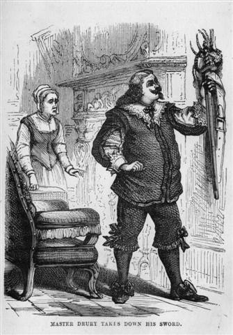 "MASTER DRURY TAKES DOWN HIS SWORD."