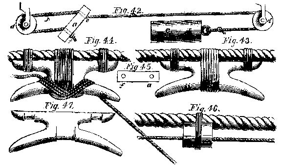 44. Cleet, showing the mode of belaying the cord.