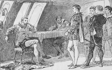 "The Golden Hind, sir, the vessel in which we were gentlemen adventurers, rounded Cape Horn, sailed up the American coast, and then, keeping west, crossed through the islands; and has, we trust, long since rounded the Cape of Good Hope and arrived in England, having circumnavigated the globe."