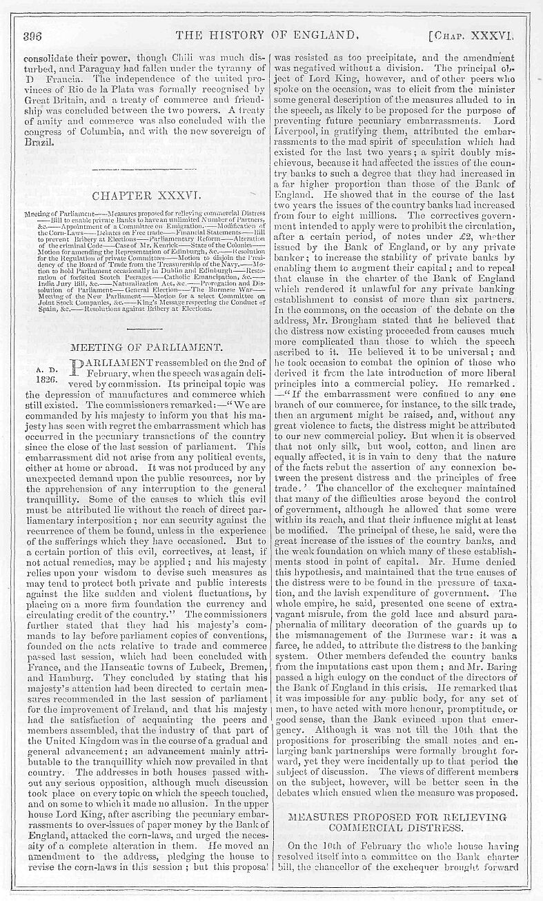 At this time there was a general impression that there was something in the constitution of the joint-stock banks, that imperatively called for legislative interference. This, indeed, was one of the subjects immediately pressed upon the investigation of parliament, by the speech of the lords commissioners at the opening of the session. In the preceding session a select committee had been appointed to consider the state of the law in reference to this subject. This committee began its inquiries in the month of May, and continued them till the close of the session. In their report to the house, they stated that they saw so many difficulties in the way of immediate legislation, and so many objections to imperfect legislation, that they would content themselves with merely recommending that the committee should be revived in the following session. On the 6th of February the chancellor of the exchequer made a motion to that effect, on which occasion he observed that he did not mean in any way to anticipate the decision of the committee; but he should be greatly misconceived, if it were supposed that his motion was made in hostility to the general principle of joint-stock banks. It had been suggested, he said, that the range of inquiry should be extended; but he considered the subjects already before them were sufficiently complicated and difficult, without the committee embarrassing themselves with other and still more delicate matters of investigation. He should, however, propose the extension of the committee’s inquiries to Ireland; and with that view would move the addition to its number of four Irish members, two from each side of the house. Mr. Hume expressed himself satisfied that the source of the difficulty lay, not in the conduct of the joint-stock banks, but in that of the Bank of England; and he was therefore anxious that the inquiries of the committee should be extended to the proceedings of that establishment, and generally to the banking system of the country. The conduct of the Bank of England, he contended, should form a principal object of investigation; and he moved as an amendment, “that there be an inquiry into the state of banking, and the causes for the changes of the circulation since the year 1833.” Mr. Williams seconded the amendment, and urged that the Bank of England had displayed a more reckless disregard of the interests of the country than had ever been shown by any public body intrusted with the management of its financial resources. On the 28th of December, 1833, the issues of the Bank were £32,600,000, and their stock £10,000,000. On the 28th of March, 1835, a reduction appeared on those issues of no less than four millions and a half. Nine months afterwards of the same year, there appeared an increased issue of nearly nine millions, being more than one-fourth of their circulation. What was the consequence? Such an advance in prices, that in September last the cost of every article of import was raised from forty to one hundred per cent. This caused a falling off of trade. Then again in January last the circulation of the Bank of England was £31,000,000, and they had four millions to pay that amount, being little more than half-a-crown in the pound to meet their engagements. The directors professed to have discovered that the true principle for regulating their issues was to keep gold to the amount of one-third of those issues; in so doing they would be safe. But had they acted upon that principle? At that moment, instead of having one-third, they had only about one-seventh or one-eighth of their issues in gold. Mr. Gisborne took a similar view of the conduct of the Bank of England, and urged the necessity of an inquiry into it by the committee, if, at least, any inquiry into the banking system was at all necessary. For his own part he did not think it was; it would only lead to expectations which it would be impossible to satisfy. The debate was closed by the chancellor of the exchequer, who objected to an extended inquiry, and on a division, the original motion was carried by one hundred and twenty-one to forty-two.