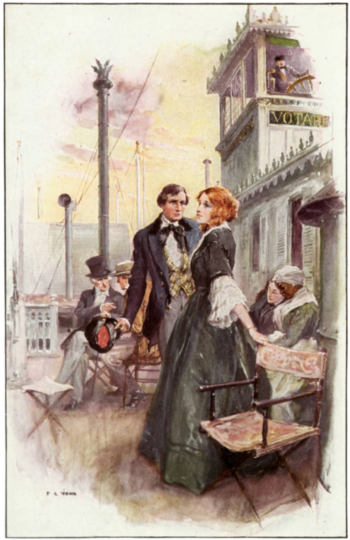 The youth whom we have called short, square, and so on crossed to the starboard derrick post. Several passengers had come up to the roof, and one who, he noticed, seemed, by the many kind glances cast upon her, to be already winning favor, was the tallish lass with the red curls.