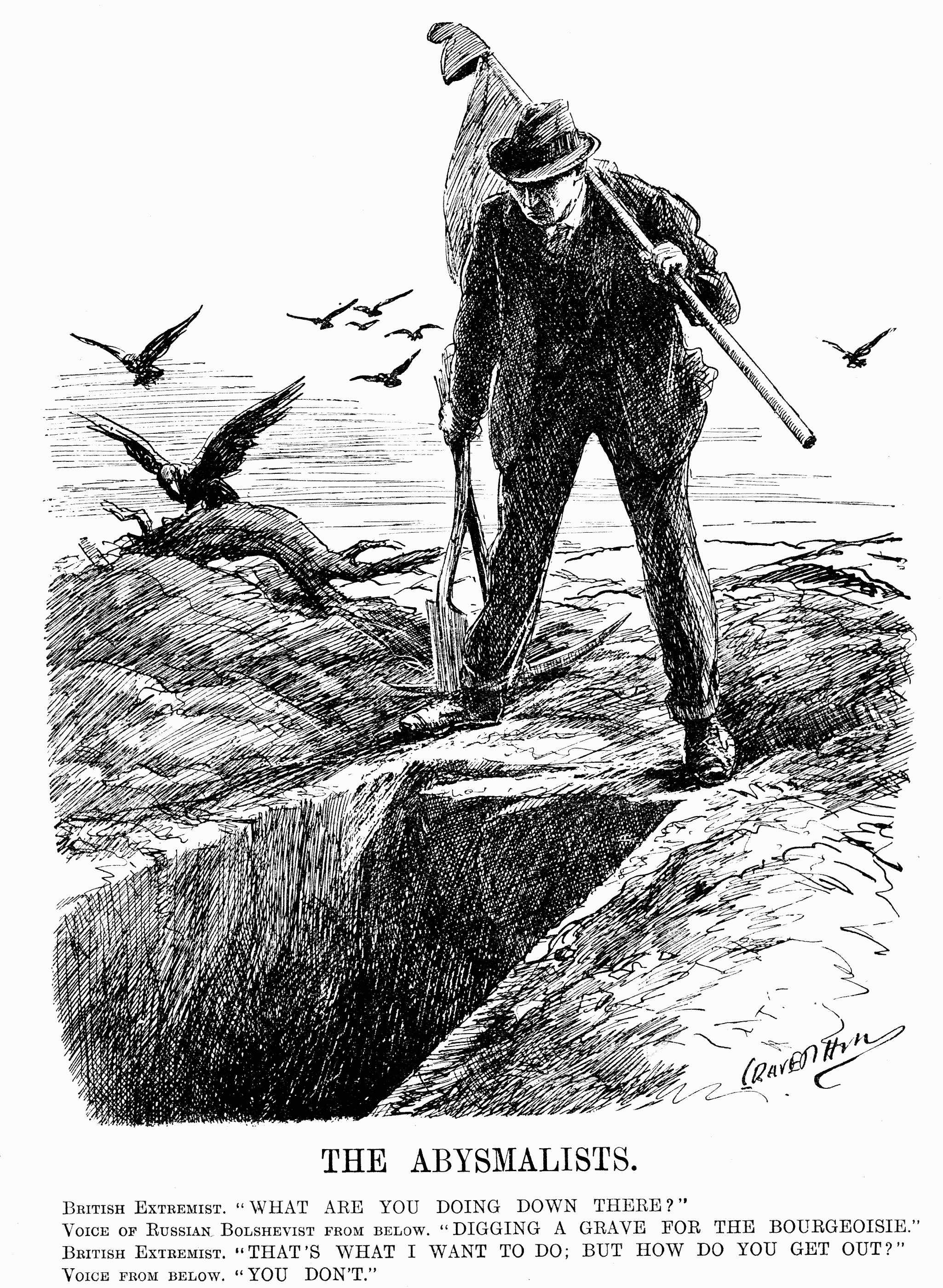Voice of Russian Bolshevist from below. "DIGGING A GRAVE FOR THE BOURGEOISIE."