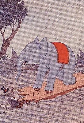 "Well, he's good and dry," said his wife. "I mean the Elephant is good and dry. He's almost as good as new." And, in fact, the Elephant was, for she had brushed off all the mud, and the heat had dried out the water.