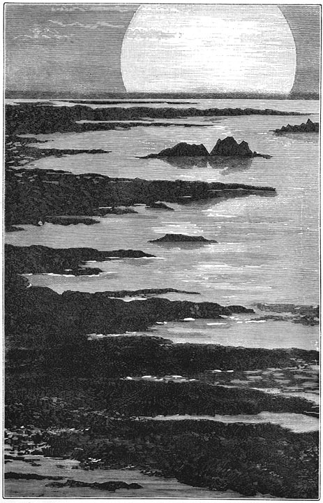 De zonnenevelvlek verspreidde aan den donkeren oneindigen hemel een flauw licht, en terwijl zij zich gestadig naar haar middelpunt verdichtte, gaf de aardsche nevelvlek, uit haar voortgekomen, een even flauw licht, terwijl zij in den tijd van een jaar om de zon heenwentelde. Onze planeet was toen geheel gasvormig, zij had toen nog geene vaste kern of geene vloeistoflaag; zij bestond toen als het ware alleen uit eenen dampkring, die veel lichter was dan de lucht, die wij inademen. Hare oorspronkelijke temperatuur was even hoog als die van den zonnegordel, waaruit zij was voortgekomen. Die temperatuur nam nog toe door hare eigen verdichting. Gehoor gevend aan de wetten der zwaartekracht, verdichtten de moleculen zich nog sterker naar het middelpunt toe. Hare bolvormige gedaante werd hoe langer hoe duidelijker zichtbaar. Eindelijk werd de nevelvlek zon en verspreidde zij een schitterend licht.