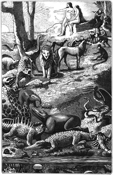De verschillende geologische lagen der aarde, die wij in onzen tijd kunnen omslaan als de bladen van een boek, toonen ons duidelijk de opvolging der begraven versteende soorten. Die soorten zijn elkander opgevolgd, terwijl zij zich stap voor stap ontwikkelden als de takken van eenzelfden boom. Zij zijn uit dezelfde bron voortgekomen en behooren tot eene zelfde orde van zaken.
