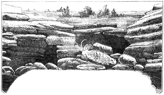 Doch eerst in 1861 werd het vraagstuk met volkomen zekerheid opgelost door de wegruiming van het puin van de grot van Aurignac, door Lartet. Daar was verdere twijfel onmogelijk. Die grot was op het oogenblik der ontdekking gesloten door eenen van eenen grooten afstand aangebrachten steen. Lartet vond in die grot de beenderen van acht diersoorten, tot de quaternaire periode behoorende. Eenige van die dieren waren daar opgegeten; hunne gedeeltelijk verkoolde beenderen droegen nog de sporen van het vuur, waarvan men nog de kolen en de asch terugvond; de beenderen van eenen jongen rhinoceros tichorinus vertoonden inkervingen, gemaakt met vuursteenen werktuigen, en waren afgekloven door hyena’s, waarvan men de sporen terugvond. De ligging van de grot maakte het onmogelijk, dat er door het diluvium [645]iets daarheen gevoerd was. Hieruit volgt dus, dat de oorspronkelijke mensch geleefd moet hebben tegelijk met de quaternaire dierenwereld, en dat hij zelfs rhinocerossen als voedsel gebruikte, en door de hyena uit dat tijdperk gevolgd werd, die zich aan de overblijfselen van den maaltijd te goed deed. Het gelijktijdig bestaan van den mensch en die fossiele dieren was daardoor bewezen.