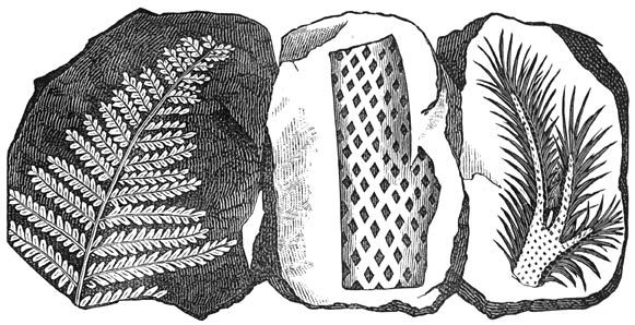 Versteende afdruksels van den Labyrinthodon (Doolhoftandige).