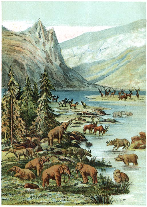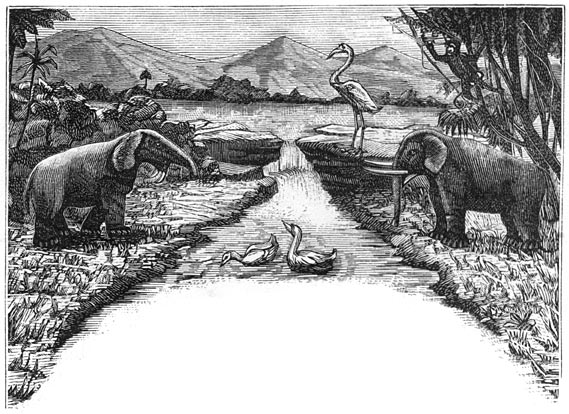 De bosschen waren woest en ondoordringbaar, de logge mastodon vertrapte de bloemen, die reeds in de open ruimte ontloken.