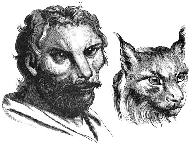 Gelijkenis tusschen mensch en dier door Charles Lebrun.
