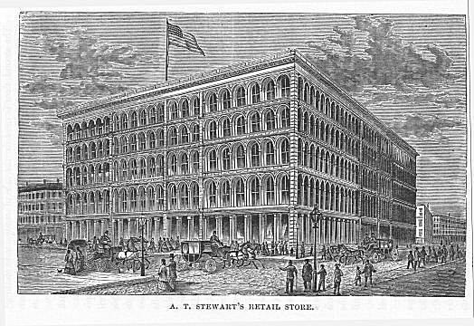 Mr. A. T. Stewart is now erecting, on Fourth avenue, a magnificent iron building, which is to be used as a “Home for Working Women.” The building extends along the avenue, from Thirty-second to Thirty-third street, a distance of 192 feet, and has a depth of 205 feet. Including the central Mansard roofs, the building is eight stories in height. It is one of the finest edifices in the city, and will be provided with every convenience for the work to which it is destined. It will be capable of accommodating fifteen hundred boarders, and will be conducted on a plan similar to that of the “Home for Working Women” in Elizabeth street. It is not to be conducted as a charity. Each occupant is to pay a fixed sum per week; and it is believed that here this sum will not exceed two dollars a week for board, lodging, and washing.