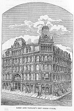 The city is substantially built. Frame houses are rare. Many of the old quarters are built of brick, but this material is now used to a limited extent only. Broadway and the principal business streets are lined with buildings of iron, marble, granite, brown, Portland, and Ohio stone, palatial in their appearance; and the sections devoted to the residences of the better classes are built up mainly with brown, Portland, and Ohio stone, and in some instances with marble. Thus the city presents an appearance of grandeur and solidity most pleasing to the eye. The public buildings will compare favorably with any in the world, and there is no city on the globe that can boast so many palatial warehouses and stores. Broadway is one of the best built thoroughfares in the world. The stores which line it are generally from five to six stories high above ground, p. 53with two cellars below the pavement, and vaults extending to near the middle of the street. The adjacent streets in many instances rival Broadway in their splendors. The stores of the city are famous for their elegance and convenience, and for the magnificence and variety of the goods displayed in them. The streets occupied by private residences are broad, clean and well-paved, and are lined with miles of dwellings inferior to none in the world in convenience and substantial elegance. The amount of wealth and taste concentrated in the dwellings of the better classes of the citizens of New York is very great.