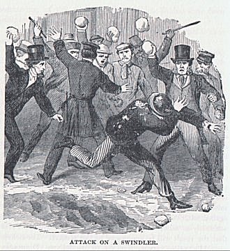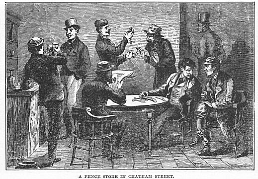 Approaching these poor creatures, as they are gazing about them with the timidity and loneliness of strangers in a strange land, the scoundrels will accost them in their own language. Glad to hear the mother-tongue once more, the emigrant readily enters into conversation with the fellow, and reveals to him his destination, his plans, and the amount of money he has with him. The sharper after some pleasantries meant to lull the suspicions of his victim, offers to show him where he can purchase his railroad tickets at a lower rate than at the office in the Landing Depot, and if the emigrant is willing, conducts him to a house in Washington, Greenwich, West, or some neighboring street, where a confederate sells him the so-called railroad tickets and receives his money. He is then conducted back to the Battery by a different route, and the sharper leaves him. Upon inquiring at the office, he learns p. 821that his cheap tickets are so much worthless paper, and that he has been swindled out of his money, which may be his all. Of course he is unable to find the place where he was robbed, and has no redress for his loss.