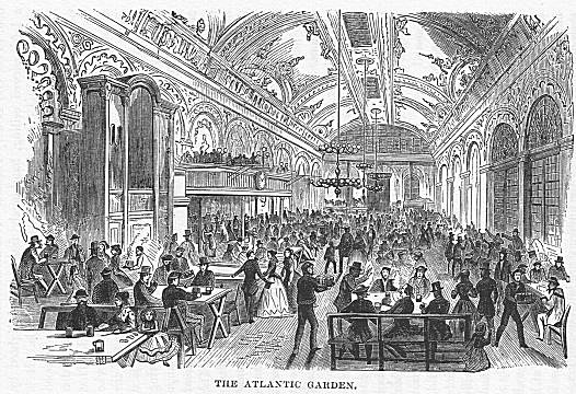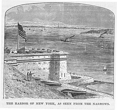 The emigrant ships, both sailing vessels and steamers, anchor in the river after entering the port. They generally lie off their own piers, and wait for the Custom House boat to board them. As soon as this is done, and the necessary forms are gone through with, preparations are made to land the emigrants, who, with their baggage, are placed on board a small steamer and conveyed to Castle Garden, a round building which juts out into the water at the upper end of the Battery.