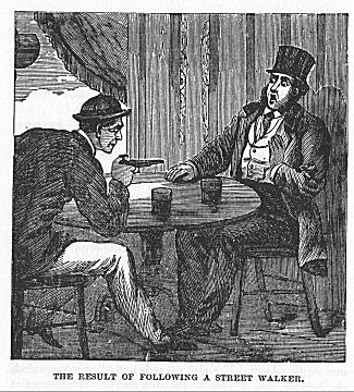 Others again are led off, by persons who pretend to be friends, to take a friendly drink in a neighboring saloon. Their liquor is drugged, and they are soon rendered unconscious, when they are robbed of their money, valuables, and even their clothes, and turned out into the street in this condition, to be picked up by the police.