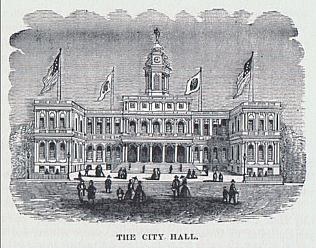 In 1785 the first Federal Congress met in the City Hall, which stood at the corner of Wall and Nassau streets, and on the 30th of April, 1789, George Washington was inaugurated first President of the United States on the same spot. By 1791 p. 48New York had spread to the lower end of the present City Hall Park, the site of the new Post Office, and was extending along the Boston road, or Bowery, and Broadway. In 1799, the Manhattan Company for supplying the city with fresh water was chartered. On the 20th of September, 1803, the cornerstone of the City Hall was laid. The city fathers, sagely premising that New York would never pass this limit, ordered the rear wall of the edifice to be constructed of brown stone, to save the expense of marble. Free schools were opened in 1805. In the same year the yellow fever raged with violence, and had the effect of extending the city by driving the population up the island, where many of them located themselves permanently. In 1807, Robert Fulton navigated the first steamboat from New York to Albany.