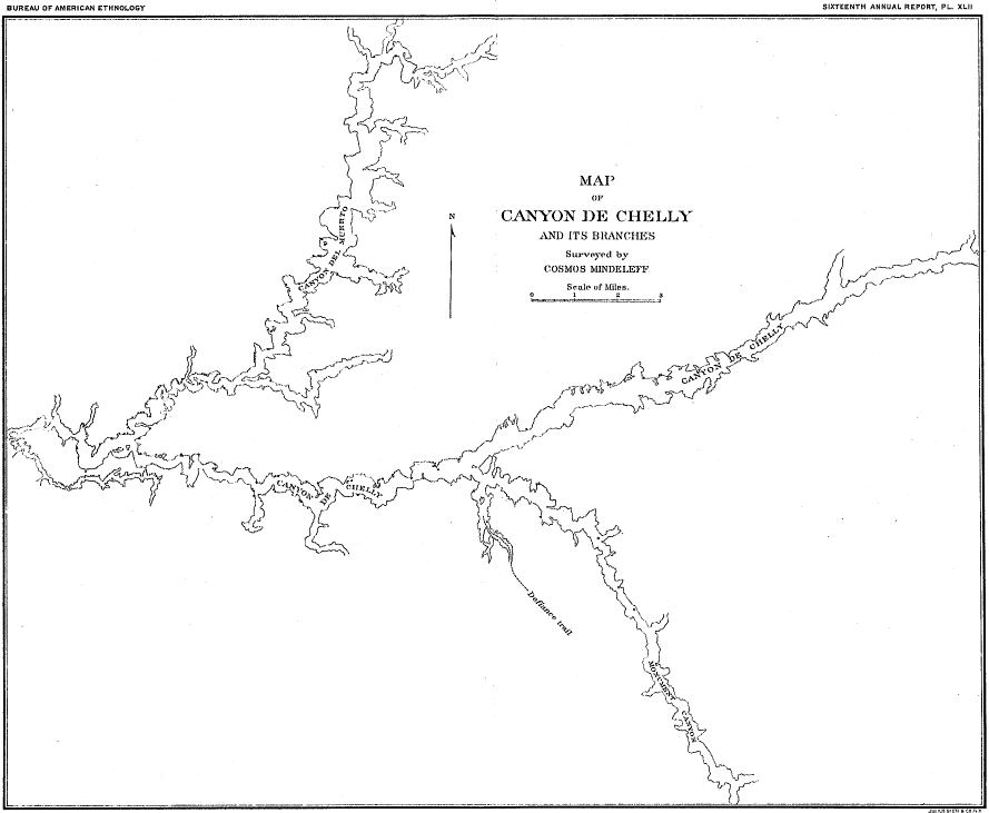 | Plate XLI. | Map of the ancient pueblo region, showing location of Canyon de Chelly |
