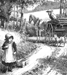 Young Lucretia's basque was sharply unbuttoned, she was jerked out of it, and it was turned around and fastened as it was meant to be. When she was finally started, with her aunts' parting admonition echoing after her, she felt sad and doubtful, but soon her merry disposition asserted itself.