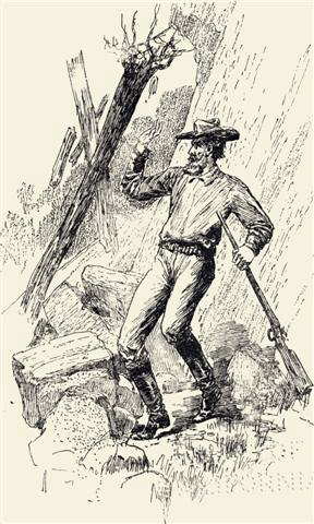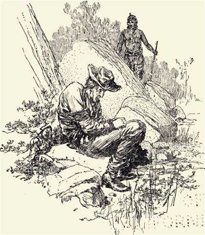 "Now, Jim, it won't be long before they will be showing around on all sides. Pile on a few more stones above that loophole that looks to the west. The next thing you know there'll be a head and a gun poked out from behind that shoulder of rock beyond you. I'll watch my side and keep a look on down the hill, too."