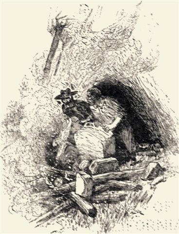 This was altogether too much for Kate to bear. She dare not come forward, but from the dark recess in which she and Nellie were hidden, her cries and prayers broke forth again: