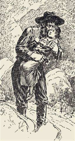 Who can say with what love and yearning the father bent over those little faces as he peered in upon them? The flickering light of the camp-fire threw an occasional glimmer over them—just enough to enable him to see at times the contour yet hardly to reveal the features of "his babies." He dare not kiss for fear of waking them. "God bless and guard you, darlings," was the choking prayer that fell from his lips. Then, vigorous and determined, he sprang into saddle.