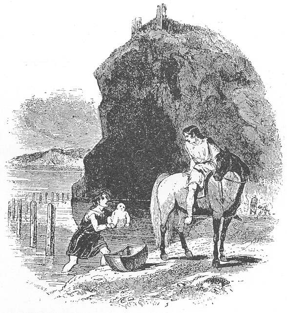 So Rhiannon sent for the teachers and the wise men, and as she preferred doing penance to contending with the women, she took upon her a penance. And the penance that was imposed upon her was, that she should remain in that palace of Narberth until the end of seven years, and that she should sit every day near unto a horse-block that was without the gate. And that she should relate the story to all who should come there, whom she might suppose not to know it already; and that she should offer the guests and strangers, if they would permit her, to carry them upon her back into the palace. But it rarely happened that any would permit. And thus did she spend part of the year.