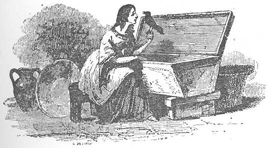 And Branwen reared a starling in the cover of the kneading trough, and she taught it to speak, and she taught the bird what manner of man her brother was. And she wrote a letter of her woes, and the despite with which she was treated, and she bound the letter to the root of the bird’s wing, and sent it towards Wales. And the bird came to this Island, and one day it found Bendigeid Vran at Caer Seiont in Arvon, conferring there, and it alighted upon his shoulder and ruffled its feathers, so that the p. 50letter was seen, and they knew that the bird had been reared in a domestic manner.