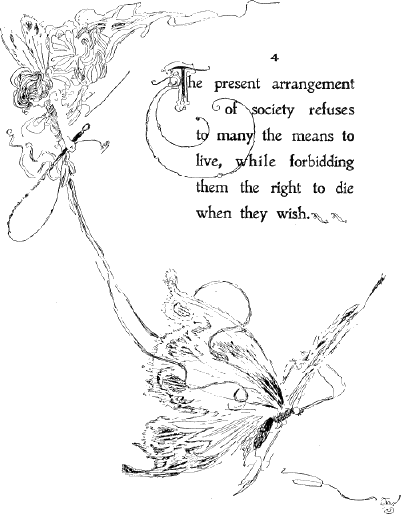 | 4 | The present arrangement of society refuses to many the means to live, while forbidding them the right to die when they wish. |