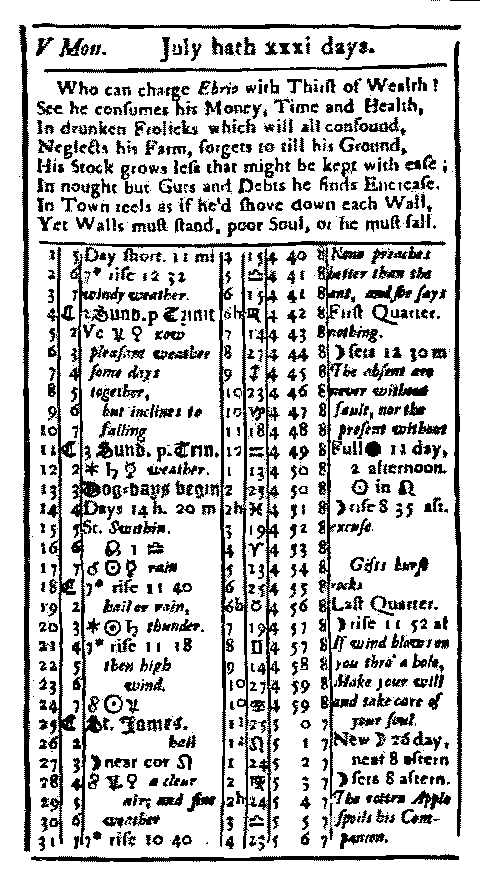 Published as a preface to Poor Richard's Almanac and gathering into one writing the maxims of Poor Richard, which had already appeared in previous numbers of the Almanac. The Speech was afterwards published in pamphlet form as the Way to Wealth. |